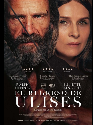 EL REGRESO DE ULISES. Título original: The Return. Año: 2024. País: Reino Unido. Dirección: Uberto Pasolini. Reparto: Ralph Fiennes (Odiseo), Juliette Binoche (Penélope), Charlie Plummer (Telémaco), Marwan Kenzari (Antinoo), Claudio Santamaría (Eumeo), Ayman Al Aboud (Indio), Amir Wilson (Filoecio), Francesco Bianchi (Anfimedon), Nicolas Retrivi (Elenus), Bruno Cassandra (Prómaco), Cosimo Desii (Eurídamo), Ángela Molina (Eurycleia). Guion: Edward Bond, John Collee, Uberto Pasolini. Novela: Homero. Música: Rachel Portman. Fotografía: Marius Panduru. Coproducción Reino Unido-Italia-Grecia-Francia; Picomedia, Rai, Heretic, Ithaca Films, Kabo Films, Marvelous Productions, Redwave Films. Duración: 116 minutos.