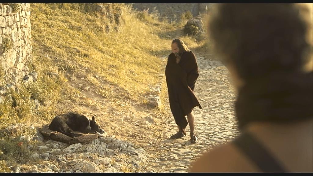 La realidad es mucho más compleja y la película lo banaliza completamente. Odiseo llega pues al cabo de veinte años e su partida y sólo le reconoce su perro Argós antes de expirar. La conmovedora escena es mostrada con mucha frialdad.