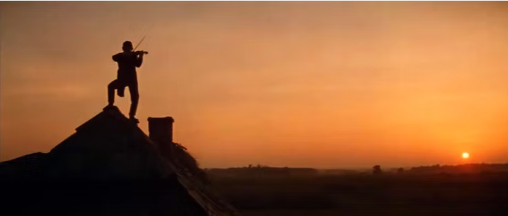El violinista en el tejado muestra una sociedad rusa, Anatevka, el argumento se centra en un lechero pobre, Teyve, y sus cinco hijas con su amargada esposa siempre de malhumor. La obra critica la persecución del pueblo judío pero también lo critica, siempre encerrado en sí mismo y en sus viejas tradiciones. Un pueblo inmutable a lo largo de los siglos, que no prospera. Se mantiene en su pobreza natural. Su director Norman Jewison ((Toronto, 21 de julio de 1926-Los Ángeles, 20 de enero de 2024), pese a su apellido no es judío, es cristiano por lo cierto. Nació en Canadá. Dirigió El Arte de Amar (1965) con Dick Van Dyke, El rey del juego (1965), Que vienen los rusos (1966), En el calor de la noche (1967), Rollerball (1975), entre otras. Fue muy criticado por no darle el papel de Teyve a Zero Mostel, un monstruo en los escenarios, y en su lugar darle el papel Topol que tuvo una carrera cinematografica muy escasa y que no gustó demasiado al público. Sin embargo en el papel de Teyve está genial. Sus diálogos con Dios son sensacionales.