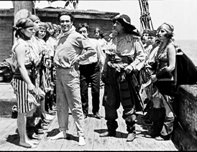 EL CAPITÁN PIRATA. Título original: Captain Kidd’s Kids. Año: 1919. País: Estados Unidos de América. Director: Hal Roach. Reparto: Harold Lloyd (el chico), Bebe Daniels (la chica), Snub Pollard (el criado), Fred C. Newmeyer (el cocinero chino), Helen Gilmore (la madre de la chica), Noah Young (el pirata grande), Sammy Brooks (el pirata pequeño y el pasajero que come plátanos), Charles E. Stevenson (el mayordomo de Harold), Hal Roach (el primer ladrón), Gus Leonard (un pirata), Marie Mosquini (una chica pirata), Estelle Adair, Marie Benson, Floyce Brown, Hardy Gibson, Phoebe Hunt, Esther Jackson, Gladys Johnston, Mabel Kroman, Gertrude Lainson, Delia Loombley, Ruth Matos, Bonnie Mayles, Grace Northington, John M. O’Brien, Katheryne Penny, Chase Thorne, John Warnack, Bobbie West. Fotografía: Walter Lundin. Productor: Hal Roach. The Rolin Film Company production; distribuida por Pathé Exchange, Incorporated (Pathécomedy). Dos bobinas.