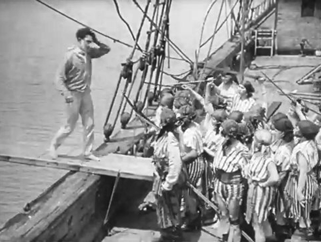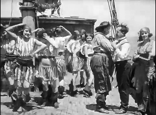Toda la cinta son peripecias mil, caídas y enredos. Los piratas masculinos, prisioneros en la bodega, escapan y se amotinan. Harold se comporta como un héroe pero todo resulta ser un sueño.