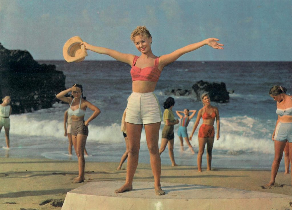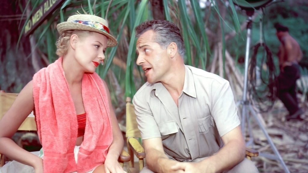 En Al sur del Pacífico tenemos como estrella a la gran Mitzi Gaynor (nacida como Francesca Marlene de Czanyi von Gerber; Chicago, 4 de septiembre de 1931-Los Ángeles, 17 de octubre de 2024). Se dio a conocer en Luces de candilejas (1954) junto a Marilyn Monroe y Donald O`Connor, aunque debutó en 1950 con My Blue Heaven, y apareció en Anything Goes (1956), llamada aquí  Entre rivales todo vale, con Bing Crosby y de nuevo Donald O’Connor, y Las girls (1956) con Gene Kelly.