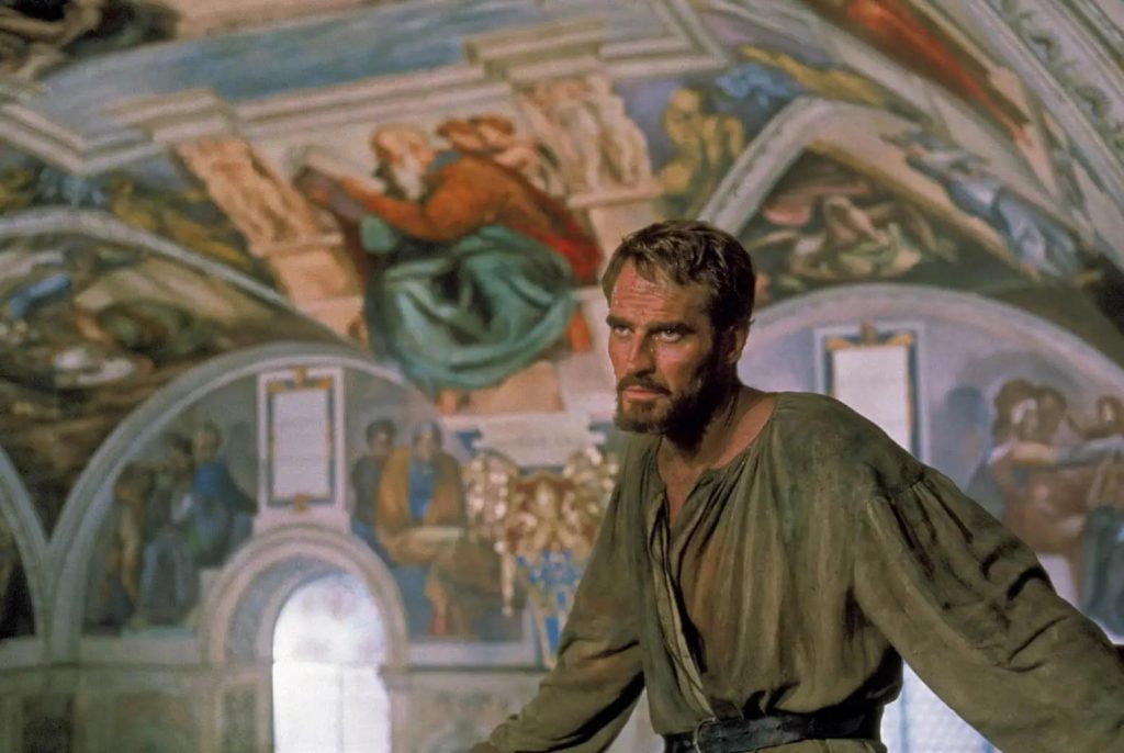 El tormento y el éxtasis está centrada precisamente en la creación de los frescos de la Capilla Sixtina y del enfrentamiento de genial Miguel Ángel con su mecenas el papa Julio II (Albissola Marina, 5 de diciembre de 1443-Roma, 21 (Londres, 30 de diciembre de 1906 – ibídem, 25 de abril de 1976) de febrero de 1513), pelea entre dos egos  desorbitados con una genial interpretación de Charlton Heston y Rex Harrison, dos actores que se llegaron a odiar en vida.