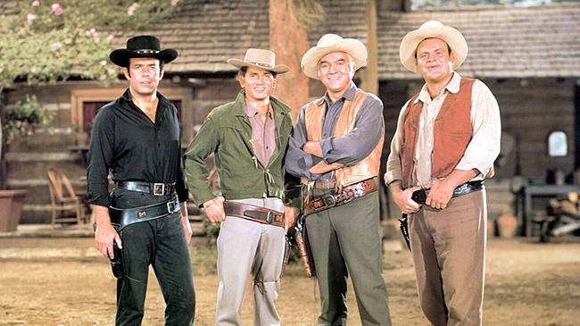 Bonanza (1959-1973), la serie que hizo famoso a Dan Blocker. De izquierda a derecha: Pernell Roberts, Michael Landon, Lorne Greene y Dan Blocker.
