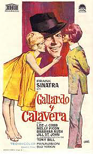 GALLARDO Y CALAVERA. Título original: Come Blow Your Horn. Año: 1963. País: Estados Unidos. Dirección: Bud Yorkin. Reparto: Frank Sinatra (Alan Baker), Lee J. Cobb (Harry Baker), Molly Picon (Sophie Baker), Barbara Rush (Connie), Jill St. John (Peggy Dawn), Dan Blocker (Mr. Eckman), Phyllis McGuire (Mrs. Eckman), Tony Bill (Buddy Baker), Dean Martin (El Vago). Guion: Norman Lear. Obra: Neil Simon. Música: Nelson Riddle. Fotografía: William H. Daniels. Essex Productions, Paramount Pictures, Tandem Productions. Duración: 112 minutos.