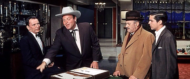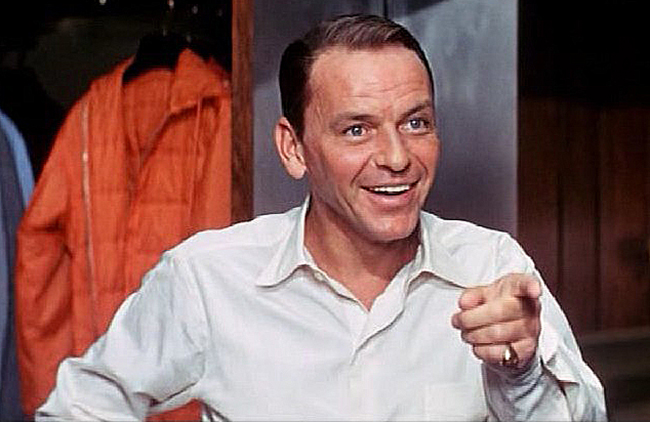 Francis Albert Sinatra (Hoboken, Nueva Jersey, 12 de diciembre de 1915-Los Ángeles, California, 14 de mayo de 1998), conocido popularmente como Frank Sinatra, Un famoso crooner (cantante) de la época. Pero al mismo tiempo fue un actor de Hollywood que rodó toda clase de películas e incluso ganó un Oscar al Mejor Actor de Reparto por De aquí a la eternidad (1953). Jefe del Rat Pack con Dean Martin, Sammy Davis jr, Peter Lawford  y Joey Bishop. También conocido como el clan Sinatra de gran influencia en el mundo del espectáculo, la canción y hoteles y casinos de Las Vegas.