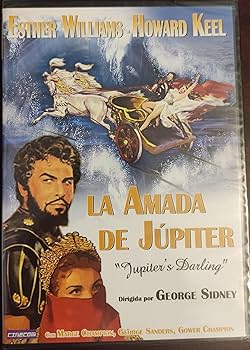 LA AMADA DE JÚPITER. Título original: Jupiter’s Darling. Año: 1955. País: Estados Unidos. Dirección: George Sídney. Reparto: Howard Keel (Aníbal), Esther Williams (Amytis, prometida de Quinto Fabio), Jo Ann Greer (Am ytis,canciones), George Sanders (Quinto Fabio, dictador romano), Gower Champion (Vario, prisionero cartaginés, esclavo de Amytis), Marge Champion (Meta, esclava de Amytis), Richard Haydn (Horacio, cronista), Norma Varden (Fabia, madre de Fabio), William Demarest (Magón, oficial de Aníbal), Douglass Dumbrille (Escipión), John Olszewski (una estatua submarina), Henry Corden (Cartalón, oficial de Aníbal), Michael Ansara (Maharbal), Martha Wentworth (viuda de Tito). Guion: Dorothy Kingsley. Canciones: Burton Lane, Harold Adamson. Fotografía: Paul Vogel, Charles Rosher. Metro-Goldwyn-Mayer (MGM). Duración: 96 minutos.