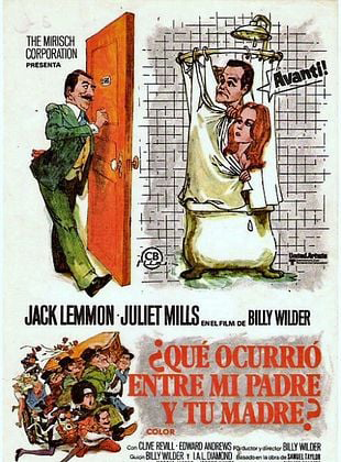 !QUÉ OCURRIÓ ENTRE TU PADRE Y MI MADRE¡ Título original: Avanti! Año: 1972. País: Estados Unidos. Dirección: Billy Wilder. Reparto: Jack Lemmon (Wendell Armbruster, Jr.), Juliet Mills (Pamela Piggott), Clive Revill (Carlo Carlucci, el director del hotel), Edward Andrews (J. J. Blodgett, el diplomático estadounidense), Gianfranco Barra (Bruno, del personal de servicio del hotel), Pippo Franco (Matarazzo), Janet Agren (una de las enfermeras del barón). Guion: Billy Wilder, I.A.L. Diamond. Autor Teatro: Samuel Taylor. Música: Carlo Rustichelli. Fotografía: Luigi Kuveiller. Estados Unidos-Italia; Jalem Productions, The Mirisch Corporation, Phalanx Productions, Produzioni Europee Associati (PEA). Duración: 144 minutos.