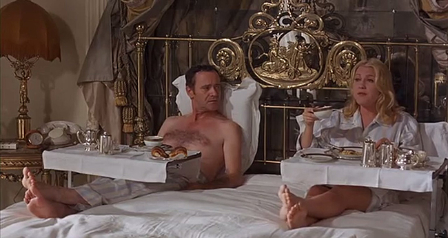 El fenecido patriarca tenía una amante inglesa que también falleció durante el accidente y su hija (estupenda Juliet Mills) coincide en el hotel para repatriar los restos de la madre. En medio está el metiche del director del hotel (genial Clive Revill) que roba la película llenando la pantalla con su aplomo y cortesía.